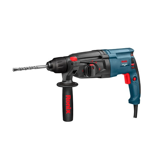 دریل بتن کن سه حالته رونیکس مدل 2701 قابلیت دریل ساده، دریل چکشی، چکش تخریب را دارا می باشد. این دستگاه در کارهای ساختمانی و تاسیساتی استفاده می شود و از حالت بتن کن آن می توان برای تخریب، سوراخ کاری بتن، چوب و آهن استفاده کرد. طراحی ارگونومیک و سبک این دستگاه موجب راحتی کاربر شده است. بتن کن رونیکس دارای سرعت 4000 دور در دقیقه و وزن 3 کیلوگرم می باشد. توان این دستگاه 800 وات و ولتاژ ورودی آن 220 ولت است. قدرت انرژی ضربه ای دستگاه بتن کن رونیکس 3 ژول می باشد. از قابلیت های دستگاه بتن کن رونیکس می توان به مواردی از جمله دسته جانبی با قابلیت چرخش 360 درجه، جلوگیری از ارتعاش دستگاه در زمان کار، قابلیت چپ گرد و راست گرد چهار شیار، قابلیت انتخاب ضربه، کلید با کیفیت ضد غبار، سیستم ابزار گیر چهار شیار ، طراحی منحصر به فرد محافظ کابل کروی و کلید قفل کن اشاره کرد.