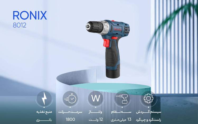 دریل پیچگوشتی شارژی 12 ولت رونیکس مدل Ronix 8012