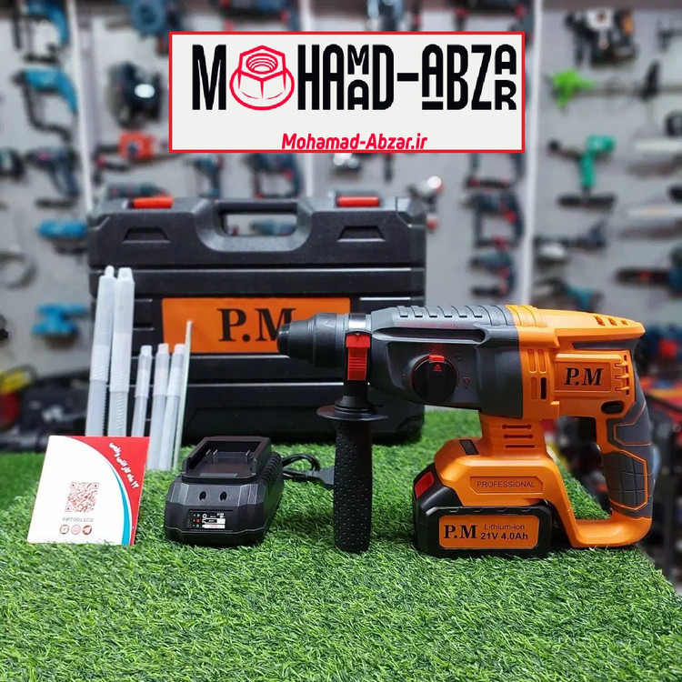 بتن کن شارژی براشلس 21 ولت 4 آمپر پی ام تک باتری مدل PM 11253 دارای دو کاربری متفاوت سوراخکاری چکشی و تخریب است،که با استفاده از باتری پرقدرت نیازشما را برطرف می کند.